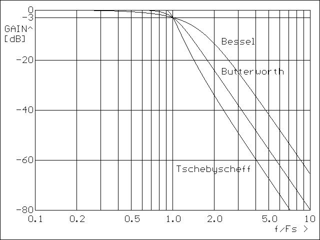 | Charakteristik | Bessel, Butterworth oder Tschebyscheff | |